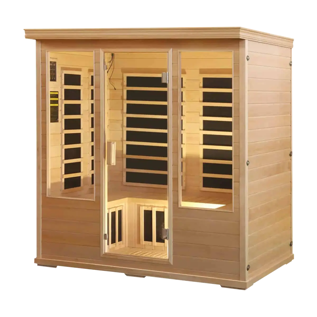 Discover a new realm of relaxation and healing with our 4-person full-spectrum infrared sauna, a complete salt cave sauna featuring a Salt Wall Panel and an included manual. Click here for more information.