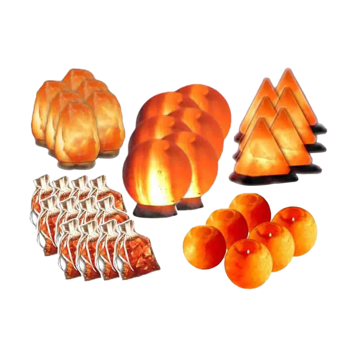 Our Everest Salt Lamp Value Pack is our largest value pack and offers the greatest savings compared to individual prices. Carefully curated, this multi-item value pack collection of Himalayan salt lamps includes 6 of our most popular тАЬQuasarтАЭ medium salt lamps, 6 spheres (globe) salt lamps, 6 pyramid salt lamps, 12 Himalayan baths salt tea bags, and 6 Himalayan salt tea light candle holders.