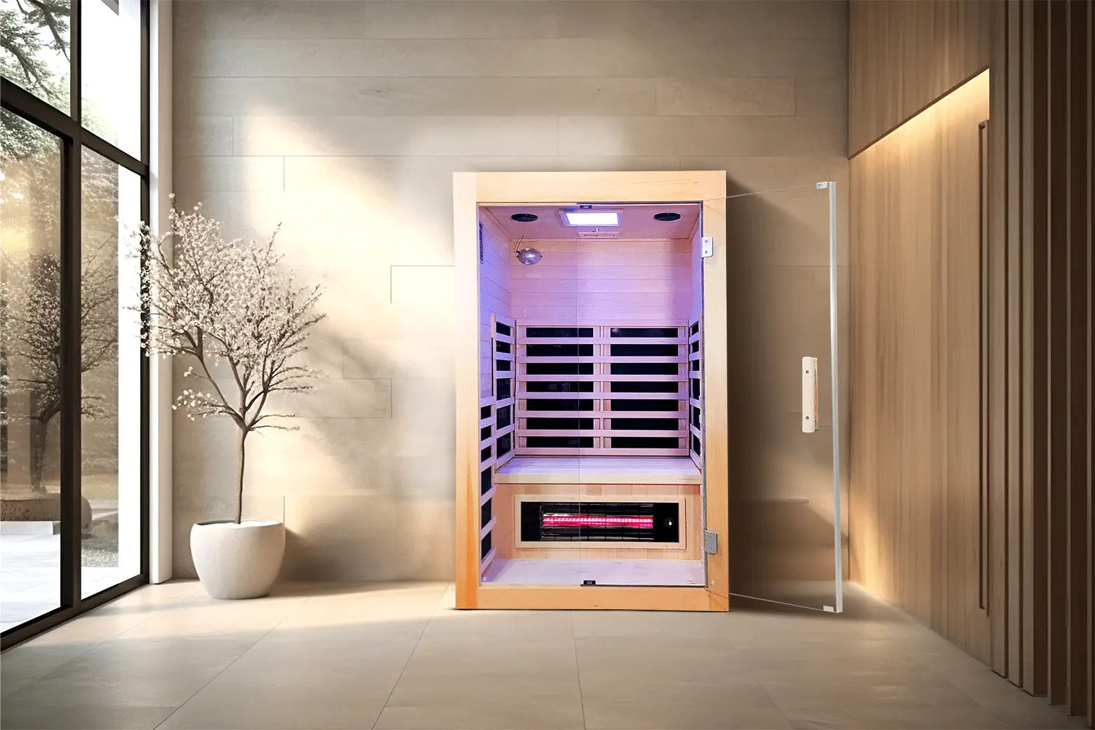 I love the full glass front. Somehow it makes the whole sauna experience more enjoyable.