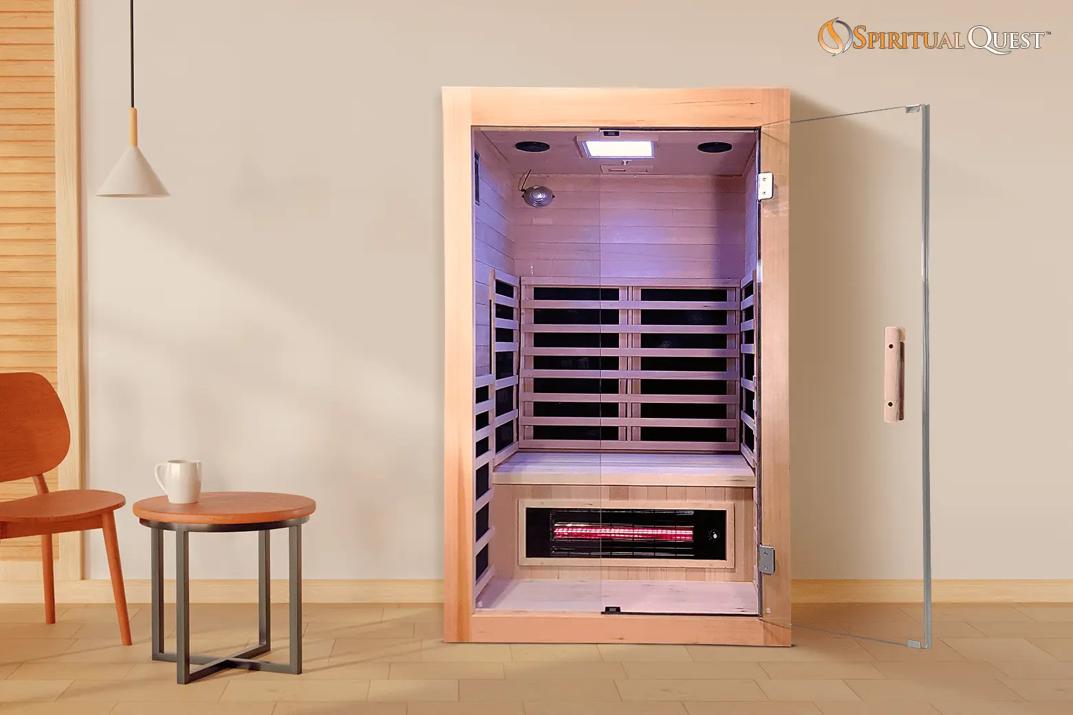 SpiritualQuest’s all-new Savannah Salt Cave Sauna combines a Carbon Fiber Sauna with Ultra-low EMF in our Salt Cave Configuration with LED Chromotherapy. This outstanding addition to our line of elite series saunas features an ultra-contemporary design! The new introductory value is for a limited time only.