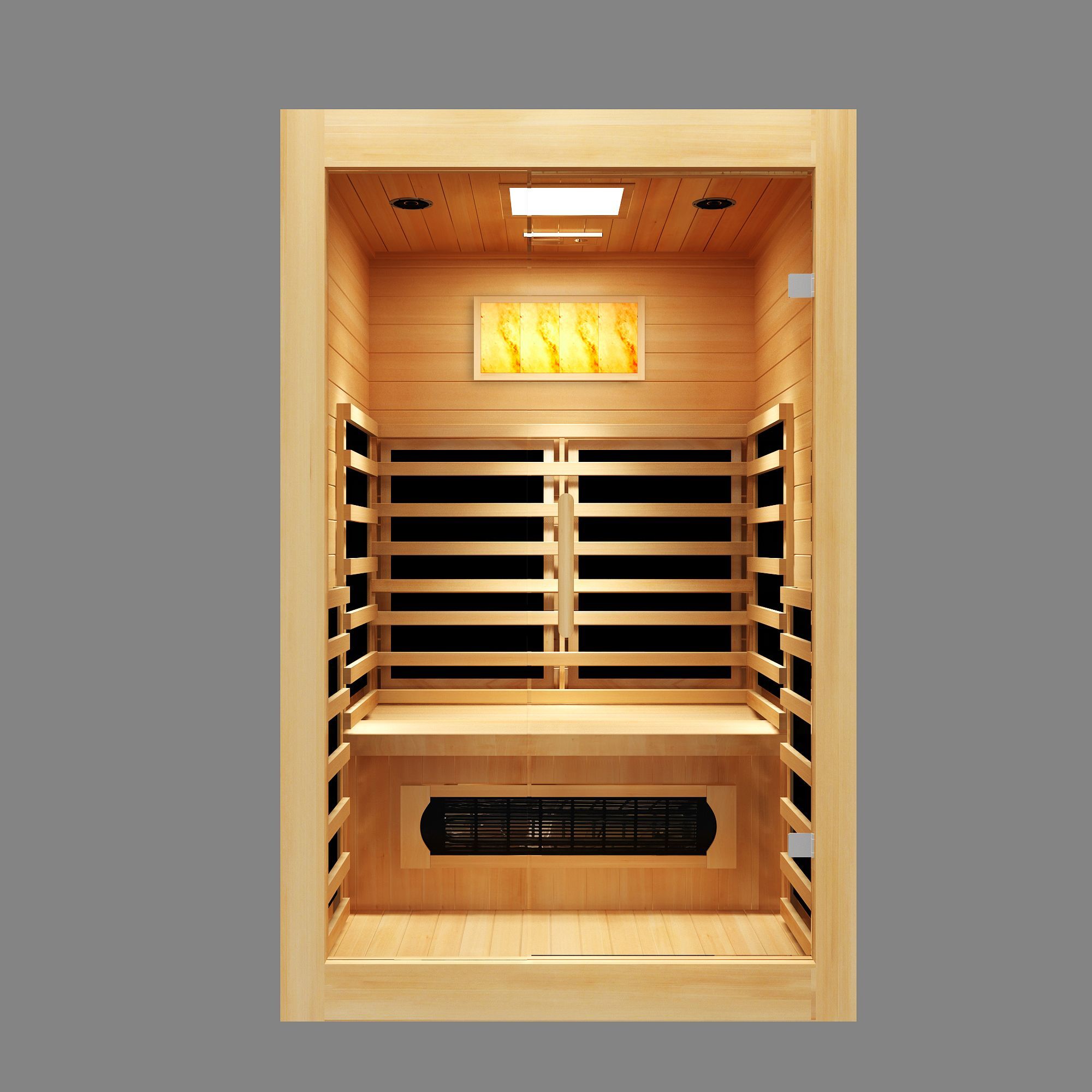 You get all the benefits of a full-spectrum (NIR, MIR, and FIR Infrared) carbon fiber sauna: detox, stress relief, relaxation, and muscle recovery, plus the benefits of a salt cave with the supplied salt blocks providing the negative ions for deeper breathing and more oxygen intake.